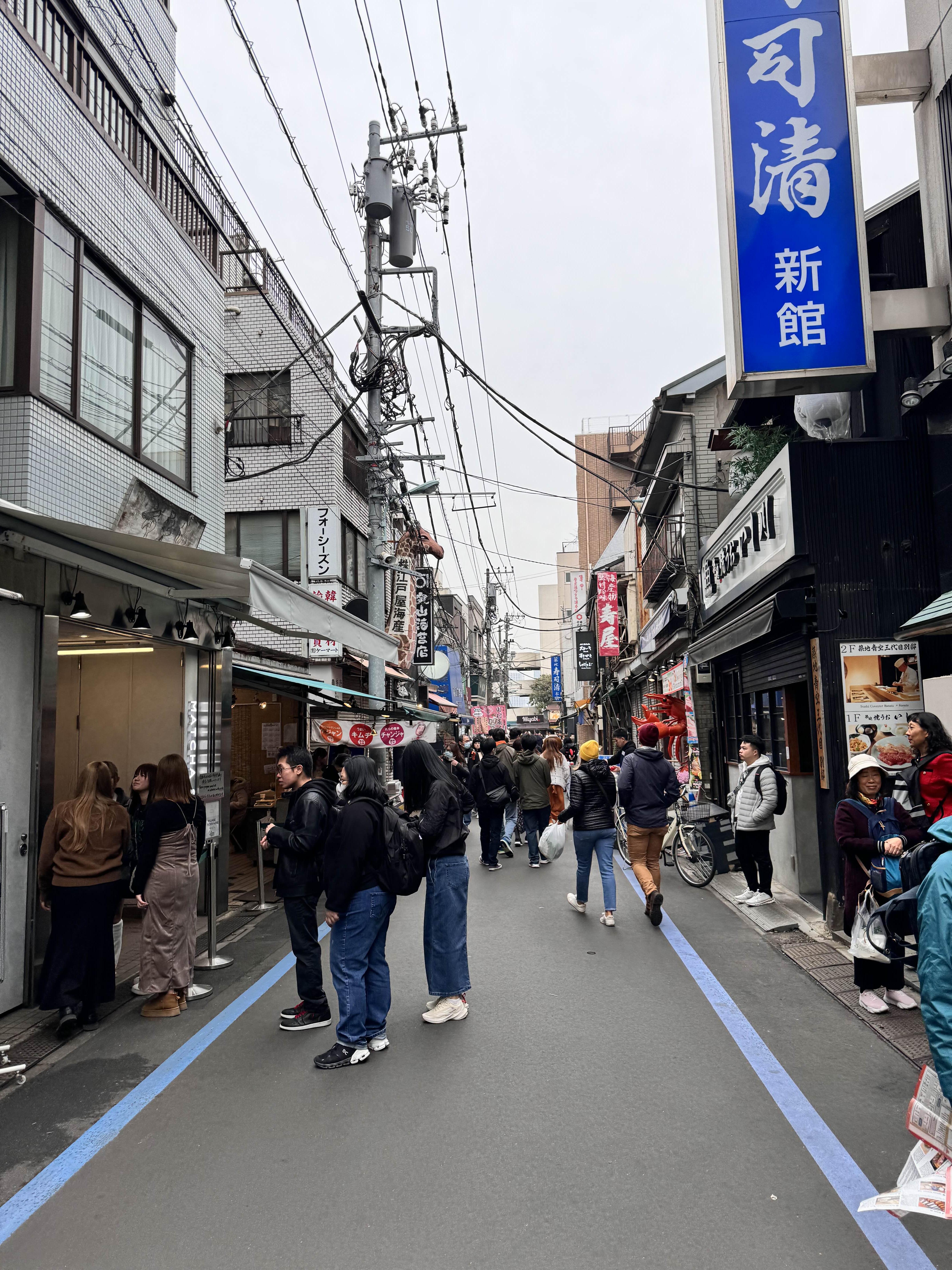 그래서 기다리는 동안 츠키지 시장 구경을 하고 싶었지만 얌전히 줄서서 기다렸어요.